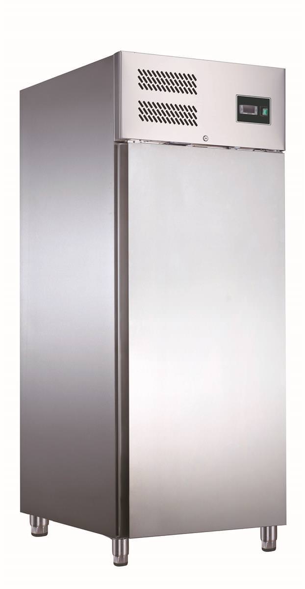 Bäckerei Kühlschrank EPA 800 TN Material: (Gehäuse und Innenraum) Edelstahl Tür selbstschließend, abschließbar Mit 10 L-förmigen Laufleisten für Bleche/Roste B 600 x T 800 mm o. 2x B 600 x 400 mm Lieferung ohne Bleche/Roste Statische Kühlung mit Umluftventilator Beheizter Türrahmen um Kondenswasser zu verhindern Automatische Abtauung Digitale Temperaturkontrolle (Dixell) Isolierung: 65 mm Geeignet für Umgebungstemperaturen von ca. 16 bis 38 °C Temp. +2 / +8 °C Anschluss: 230 V – 50 Hz – 0,295 kW Inhalt (brutto/netto): 737/612 Liter Außenmaße: B 740 x T 990 x H 2000 mm Kältemittel : R290 Energieeffizienzklasse: D (Spektrum A+++ bis E)