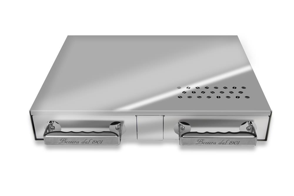 Bezzera Abklopfkasten mit 2 SchubladenDie Sudschublade verfügt über zwei Schübe und harmoniert optisch sehr gut mit den BZ-Serien Espressomaschinen von Bezzera. Sie ist sehr hochwertig verarbeitet und aus Edelstahl gefertigt.Maße: ( B x T x H ) 48,0 x 39,5 x 7,5 cmMaterial: EdelstahlLieferumfang: 1x Sudschublade mit 2 Schüben