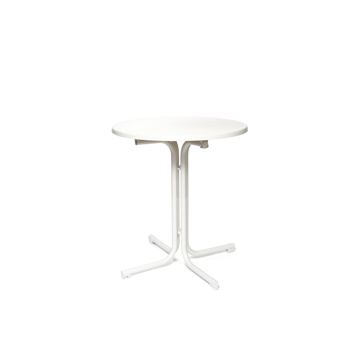 Bistrotisch Berlin weiß Ø 70 cm Der Bistrotisch Berlin sieht aus wie ein echter robuster Terrassentisch. Er steht mit seinem vierbeinigen Gestell äußerst stabil und ist natürlich auch mit anderen Sevelit-Tischplatten erhältlich. Maße: 70 x 70 x 78 cm (BxTxH) Gewicht: 15kg
