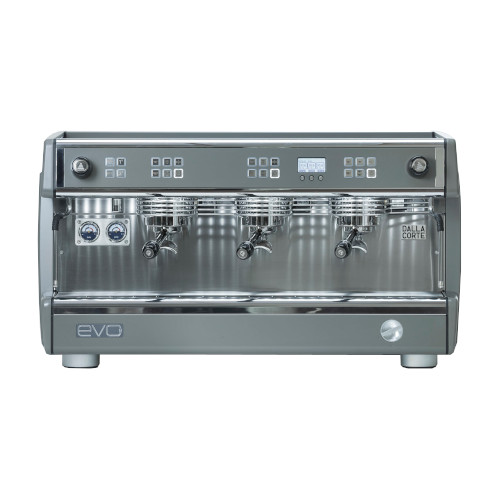 Dalla Corte Evo 2Siebträger für Gastronomie und Gewerbe mit folgenden Eigenschaften:Multi Boiler2, 3 oder 4 gruppigseparate Brühgruppen und Boiler54mm Siebträger7,5 Liter Boilerkapazitätüber 250 Tassen / Tag Geeignet für Restaurants, Cafés und UnternehmenHaben Sie Fragen? Bei uns werden Sie richtig beraten, denn wir finden das passende Modell für Ihre Bedürfnisse! Wählen Sie: 0931 467 864 20Informationen und Know-How zu Espressomaschinen finden Sie hierTechnische KurzbeschreibungAnzahl Brühgruppen:2 gruppig3 gruppig4 gruppigAbmessungen:730x510x525 mm940x510x525 mm1150x510x525 mmGewicht:67 kg83 kg100 kgEnergieverbrauch:7,9 kw11,3 kw13 kwWärmeleistung:4,3 kw5,1 kw6 kwAnschlusswerte:220 / 400 V 3N400 V 3N400 V 3NBoilerkapazität:7,5 l13 l13 lVolumen der Brühgruppen:0,5 l0,5 l0,5 lSerieller Anschluss:RS 232/485RS 232/485RS 232/485LPS (low power system):inbegriffeninbegriffeninbegriffenTimer:i…