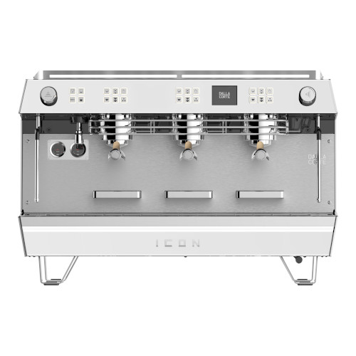 Dalla Corte Icon HighSiebträger für Gastronomie und Gewerbe mit folgenden Eigenschaften:mit Schubladen für Espressotassen und höheren Standfüßen54mm oder 58mm Siebträgeroptional: Grinder Control System, Milk Control System, Online Control System7,5 Liter / 13 Liter Boilerkapazitätüber 250 Tassen / Tag Geeignet für Restaurants, Cafés und Unternehmen Technische KurzbeschreibungAnzahl Brühgruppen:2 gruppig3 gruppigGewicht:58 kg95 kgWärmeleistung:4,5 kw6,33 kwAnschlusswerte:200 / 220 V, 3 50 / 60 Hz200 / 220 V, 3 50 / 60 HzBoilerkapazität:7,5 l13 lVolumen der Brühgruppen:0,55 l0,75 lGCS (Grinder Control System):optionaloptionalMCS (Milk Control System):optionaloptionalOCS (Online Control System):optionaloptionalBesonderheiten Dalla Corte Icon High – extrem zuverlässigDie Icon präsentiert sich nun auch mit 2 oder 3 Schubladen, welche bei Bedarf herausgezogen werden können um die Standhöhe …