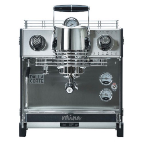 Dalla Corte MinaDalla Corte Mina: Form follows Functionmit patentierter Multi-Boiler-Technologieneuartige RotationspumpeBoiler Kapazität 3lVolumen der Brühgruppe 0,5lMaße: (B x H x T ) 385 x 385 x 410mmTeewasserauslass inklusiveFestwasseranschluss inklusiveDalla Corte Mina – Lieferumfang1x Siebträger in OriginalverpackungBedienungsanleitungBesonderheitenTechnische KurzbeschreibungBauartMultiboiler – TechnologiePumpenartRotationspumpeEinstellungHandhebelWasseranschlussFestwasserSteuerungmanuell oder automatischLeistung2850 WattGewicht33 kgMaße (B/H/T)385 mm x 385 mm x 400 mmFarbewählbarGehäuseEdelstahl oder HolzDalla Corte ""Mina"" – Form follows functionsDer Siebträger mit modernste technologischer Ausstattung im Innern, und unzähligen Designvarianten außen.Ein Siebträger – Unendliche GestaltungsmöglichkeitenDie Dalla Corte Mina lässt sich in schier unendlichen Varianten ganz auf die ind…