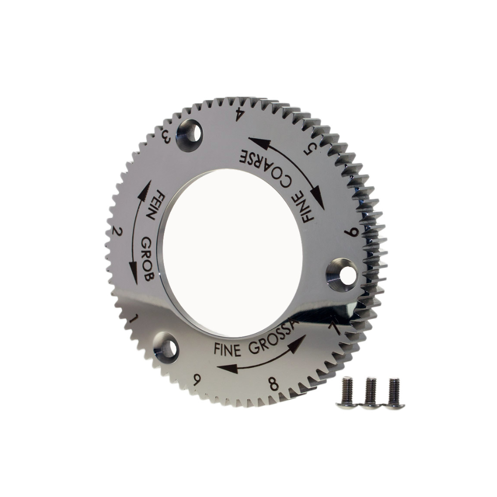 ECM S-64 Espressomühle: Zahnradkranz aus EdelstahlRobuster Zahnradkranz aus Edelstahl für ECM S-64 Espressomühlen. Dieser Zahnkranz verfügt nicht nur über eine höhere Stabilität, er wertet auch Ihre Espressomühle von ECM optisch auf.Um den Zahnradkranz wechseln zu können, schließen Sie zuerst den Schieber am Bohnenbehälter und nehmen ihn von der Kaffeemühle ab. Anschließend lösen Sie die drei Schrauben mit denen der Zahnradkranz an der ECM Mühle befestigt ist und nehmen den alten Zahnradkranz von der Espressomühle ab. Nun legen Sie den neuen Zahnradkranz auf und befestigen ihn mit den drei mitgelieferten Schrauben an der ECM Mühle. Nachdem Sie den Bohnenbehälter wieder aufgesetzt haben, öffnen Sie den Schieber wieder. Ihrem perfekten Kaffeegenuss steht nun nichts mehr im Weg.Material: EdelstahlLieferumfang: 1 x Zahnradkranz mit drei SchraubenDas Ersatzteil passt in folgende ECM Modelle:S…