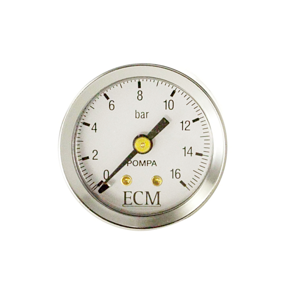 ECM Technika 3: Pumpenmanometer mit LogoGewinde-Aussendurchmesser: 9.7mmManometer-Rand: Durchmesser ca. 41.2mm, ca. 0.9cm breitLieferumfang: 1 x Pumpenmanometer mit LogoDas Ersatzteil passt in folgende ECM Modelle:ReplikaTechnika 3Hinweis: Sofern in Ihrer Espressomaschine noch ein kurzes Kapillarrohr am Manometer angeschlossen ist,empfehlen wir die Nachrüstung des Kapillarrohr 1 Meter.