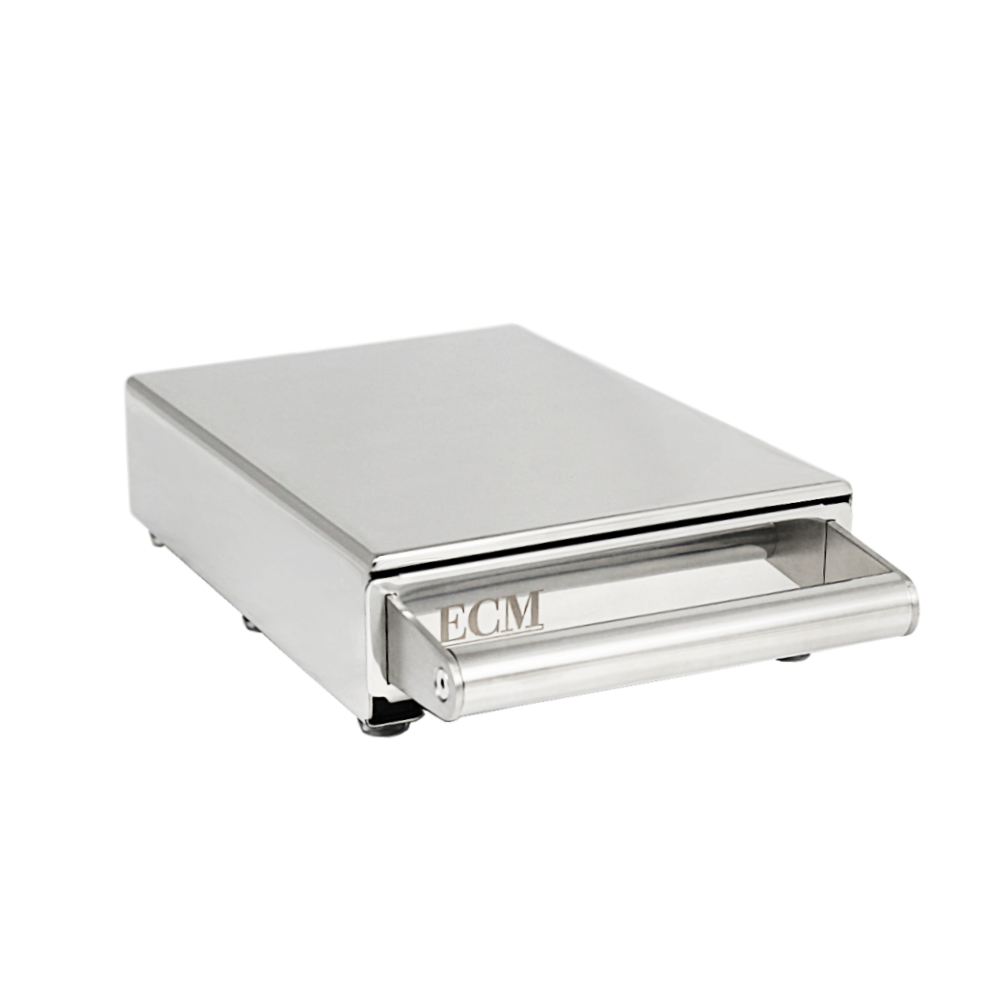 ECM Sudschublade Göße M formschöne Sudschublade perfekt abgestimmt auf ECM Mühlen.Die Schublade ist aus Edelstahl gefertigt und extrem hochwertig verarbeitet. Auf der Rückseite ist das ECM Logo eingefäst. Die Konstruktion ist geräuschgedämmt.Maße: (BxTxH) 16 x 26 x 6,5 cm ohne GriffLieferumfang: 1x Sudschublade Edehlstahl poliert