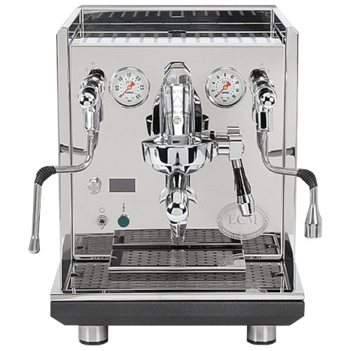 ECM Synchronika II OLEDHaushalts-Siebträger mit folgenden Eigenschaften:Dualboiler-SiebträgerECM E61-BrühgruppeRotationspumpeca. 6,5 Minuten AufheizzeitOLED Display für alle wichtigen InformationenECM Synchronika II OLED Lieferumfang1x Maschine in Originalverpackung1x Filterträger mit 1 Auslauf (ECM Logo)1x Filterträger mit 2 Ausläufen (ECM Logo)1x Eintassensieb1x Zweitassensieb1x Blindsieb1x Edelstahl-Tamper plan (Ø 58 mm)1x Reinigungspinsel1x Metallschlauch 1/8"" x 3/8""1x Höhengitter für Espressotassen1x Ablaufwanne mit Montagematerial1x BedienungsanleitungBesonderheitenTechnische KurzbeschreibungBauartDualboiler-SystemPumpenartRotationspumpeVentilverschlussKippventilWasseranschlussWassertank oder FestwasseranschlussFüllmenge Wassertank2,8 LiterAufheizzeitca. 6,5 Min.Brühgruppe BauartECM E61 BrühgruppeManometer im Retro Design✔Leistung1200 WattGewicht30,0 kgMaße (B/H/T)33,5 cm x 49,0 …