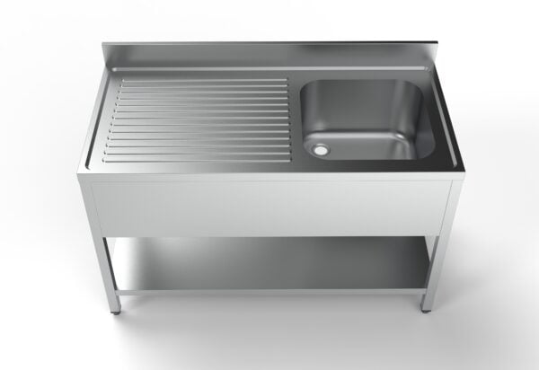 Edelstahl Spültisch PRO mit Grundboden 140 x 70 cm – 1 Becken rechts