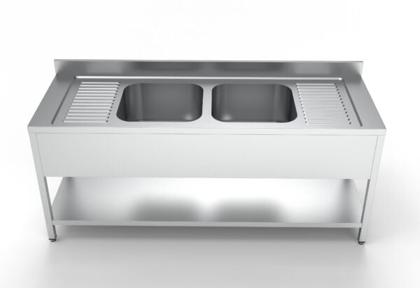 Edelstahl Spültisch PRO mit Grundboden 200 x 70 cm – 2 Becken mittig