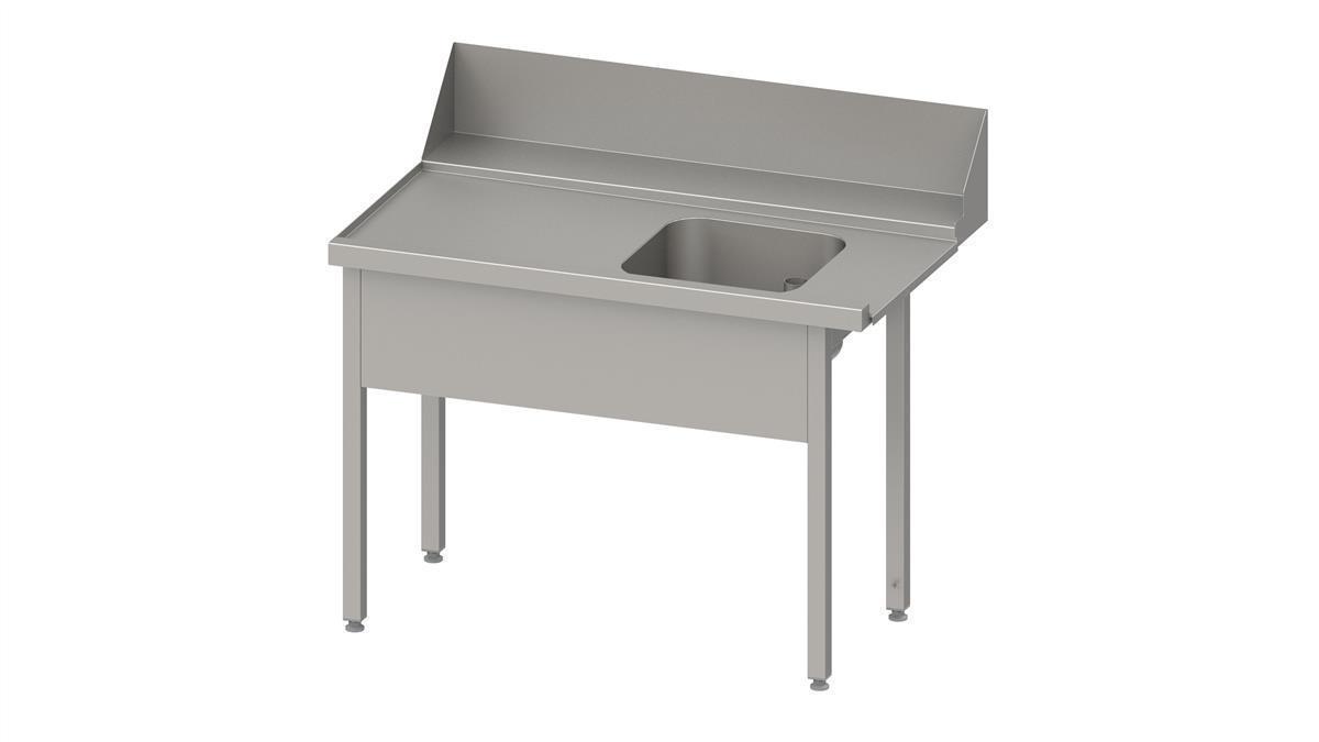 Edelstahl Zulauftisch PRO Korbführung mit Gefälle + 1 Becken 1400x750x880 mm, Anbauseite links, mit Aufkantung 200 mm und Beckenblende, verschweißt Korbführung mit 2° Gefälle gemäß EU-Richtlinie 93/43/EWG fest verschweißte Ausführung Aufkantung hinten (200 mm Höhe) Plattenstärke mindestens 1,2 mm, Becken 1 mm Beckenblende (280 mm Höhe) Anbauseite links (Einhängung rechts) nahtlos eingepresstes Spülbecken Abflussloch Ø 52 mm höhenverstellbare Füße +25 mm bis -5 mm Tischbeine aus Vierkantprofilen 40×40 mm Lieferung inkl. Überlaufrohr und Abflusssieb hergestellt aus rostfreiem, ferritischem Stahl passgenau für alle Haubenspülmaschinen von Stalgast einfach anpassbar an Haubenspülmaschinen anderer Hersteller hygienisch und pflegeleicht ressourcenschonende Eigenproduktion durch Verzicht auf Folierung Der Aufbau ist kinderleicht: Auspacken, Tisch seitlich an Ihre Haubenspülmaschine von Stalgast einhängen, ausbalancieren und der Arbeitstag an Ihrer neuen Spülstrecke kann starten! Die Korbführung des Zulauftischs ist in Richtung Haubenspülmaschine um 2 Grad geneigt, damit überschüssiges Wasser ungehindert ablaufen kann und die Ansammlung von Keimen vermindert wird. Der Tisch erfüllt die EU-Richtlinie 93/43/EWG und ist für öffentliche Einrichtungen geeignet! Die verschweißte Ausführung ist besonders stabil und hält auch höchster Belastung stand. Der Übergang zwischen Geschirrspülmaschine und Tisch ist besonders eben, so dass Spülkörbe ohne Kraftaufwand verschoben werden können. Gepaart mit der optimal einzustellenden Arbeitshöhe erhalten Sie einen sicheren, ergonomischen Arbeitsplatz, der Ihre körperliche Belastung reduziert und Ihnen das Arbeiten erleichtert. Am Ende des Arbeitstages ist das eingepresste Spülbecken sowie die glatte, gradlinige Arbeitsfläche leicht hygienisch zu reinigen und Ihr Feierabend kann beginnen! Wir liefern Ihnen unsere eigenproduzierten Zulauftische in Breiten bis zu 1800 mm sowie mit Grundboden oder mit der Anbauseite rechts! Auf Kundenwunsch kann die Einhängevorrichtung schnell und unkompliziert an Haubenspülmaschinen anderer Hersteller angepasst werden. Die zugehörigen Ablauftische sind ebenfalls in vielfältigen Maßen und Ausführungen erhältlich. Finden Sie unter den zahlreichen Möglichkeiten die maßgeschneiderte Lösung für Ihre Wunsch-Spülküche!