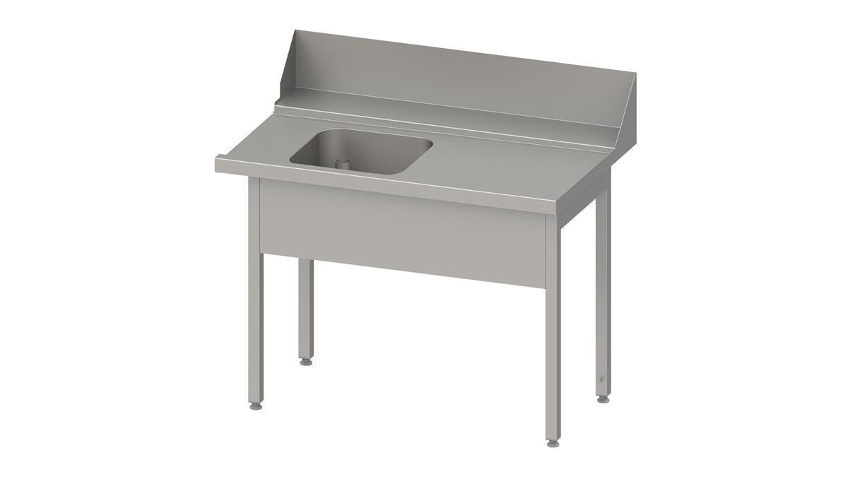 Edelstahl Zulauftisch PRO Korbführung mit Gefälle + 1 Becken 1700x750x880 mm, Anbauseite rechts, mit Aufkantung 200 mm und Beckenblende, verschweißt Korbführung mit 2° Gefälle gemäß EU-Richtlinie 93/43/EWG fest verschweißte Ausführung Aufkantung hinten (200 mm Höhe) Plattenstärke mindestens 1,2 mm, Becken 1 mm Beckenblende (280 mm Höhe) Anbauseite links (Einhängung rechts) nahtlos eingepresstes Spülbecken Abflussloch Ø 52 mm höhenverstellbare Füße +25 mm bis -5 mm Tischbeine aus Vierkantprofilen 40×40 mm Lieferung inkl. Überlaufrohr und Abflusssieb hergestellt aus rostfreiem, ferritischem Stahl passgenau für alle Haubenspülmaschinen von Stalgast einfach anpassbar an Haubenspülmaschinen anderer Hersteller hygienisch und pflegeleicht ressourcenschonende Eigenproduktion durch Verzicht auf Folierung Der Aufbau ist kinderleicht: Auspacken, Tisch seitlich an Ihre Haubenspülmaschine von Stalgast einhängen, ausbalancieren und der Arbeitstag an Ihrer neuen Spülstrecke kann starten! Die Korbführung des Zulauftischs ist in Richtung Haubenspülmaschine um 2 Grad geneigt, damit überschüssiges Wasser ungehindert ablaufen kann und die Ansammlung von Keimen vermindert wird. Der Tisch erfüllt die EU-Richtlinie 93/43/EWG und ist für öffentliche Einrichtungen geeignet! Die verschweißte Ausführung ist besonders stabil und hält auch höchster Belastung stand. Der Übergang zwischen Geschirrspülmaschine und Tisch ist besonders eben, so dass Spülkörbe ohne Kraftaufwand verschoben werden können. Gepaart mit der optimal einzustellenden Arbeitshöhe erhalten Sie einen sicheren, ergonomischen Arbeitsplatz, der Ihre körperliche Belastung reduziert und Ihnen das Arbeiten erleichtert. Am Ende des Arbeitstages ist das eingepresste Spülbecken sowie die glatte, gradlinige Arbeitsfläche leicht hygienisch zu reinigen und Ihr Feierabend kann beginnen! Wir liefern Ihnen unsere eigenproduzierten Zulauftische in Breiten bis zu 1800 mm sowie mit Grundboden oder mit der Anbauseite rechts! Auf Kundenwunsch kann die Einhängevorrichtung schnell und unkompliziert an Haubenspülmaschinen anderer Hersteller angepasst werden. Die zugehörigen Ablauftische sind ebenfalls in vielfältigen Maßen und Ausführungen erhältlich. Finden Sie unter den zahlreichen Möglichkeiten die maßgeschneiderte Lösung für Ihre Wunsch-Spülküche!