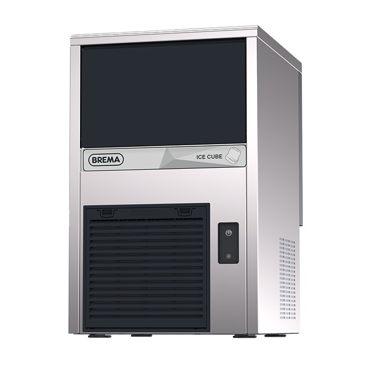 Brema Eiswürfelbereiter / Eiskegel CB 246 HC Air – 26 kg/24h + 6 kg Speicher – luftgekühlt Klarer, fester Kegel (18 Gramm) einzeln geformt, entsteht durch das Sprühen von Wasser in einen Verdampfer. Der Kegel kühlt schnell, verwässert den Drink nur langsam und hält lange. Einsatz: Hotel, Restaurant, Bar, Disco, Cafe Eisproduktion/Tag* : 26 kg Behälterkapazität: 6 kg = 350 Stück Kondensatortyp: A Kältemittel: R290 Eiskegeltyp:A-18g (optional: C-33g, D-13g, E-42g) Autom. Reinigung: ja Anschluss**: 350 W Sicherung: 10A Maße (B/T/H): 387 x 470 x 607 mm (zzgl. Stellfüße 5 mm) Ausführung: Edelstahl AISI 304, Scotch Brite *Umgebungstemperatur +21° C – Wassertemperatur +15° C ** Umgebungstemperatur +43° C Mit Wasserkühlung und/oder Ablaufpumpe auf Anfrage