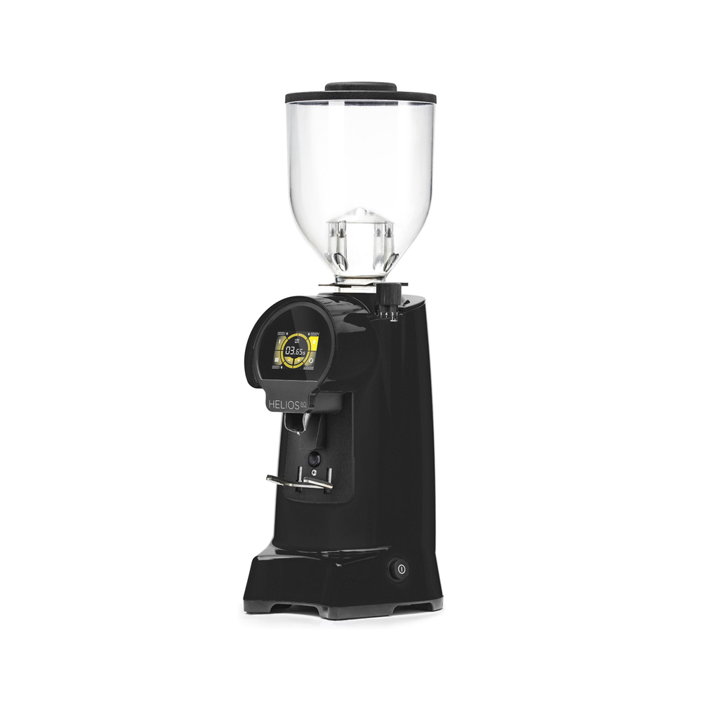 Eureka Helios80 mm – schwarz mattprofessionelle Espressomühle für Privathaushalte und Gewerbe mit folgenden Eigenschaften:Mahlscheiben mit 80 mmZuverlässig und für große Mengen geeignetsehr hohe MahlgeschwindigkeitStufenloses Micrometric Regulation System3 Mengenspeicher Geeignet für Restaurants, Cafés und UnternehmenEureka HeliosDirektmahler mit 4-farbigem Touch-Display und extrem schnellen MahlvorgangMit der Helios lassen sich unterschiedliche Mahlgrade des Kaffeepulvers schnell umsetzen. Denn bei anderen Zubereitungsformen, z.B. in einer Mokkakanne oder French Press sollte der Kaffee bekanntlich grob gemahlener sein.Individuell einstellbare MahlgradeDie Mahlgrade der Helios des italienischen Spezialisten Eureka lassen sich mühelos und schnell anpassen. Egal ob es fein gemahlenes Kaffeepulver für den Espresso aus einem Siebträger sein soll, oder grob gemahlener Kaffee für die Zubereitu…
