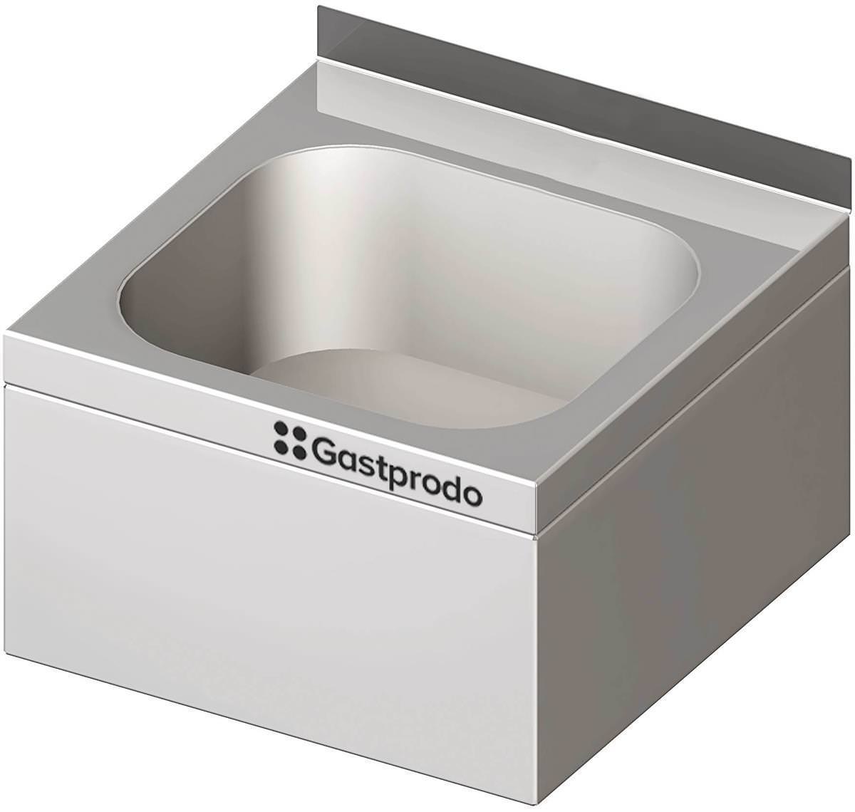 Handwaschbecken mit dreiseitiger Beckenblende Beckenblende dreiseitig mit Aufkantung Beckengröße: 330x300x150 mm Loch für Armatur mittig des Beckens mit einem Durchmesser von 33 mm (mit Blende) Maße: 400 x 410 x 240 mm (BxTxH)