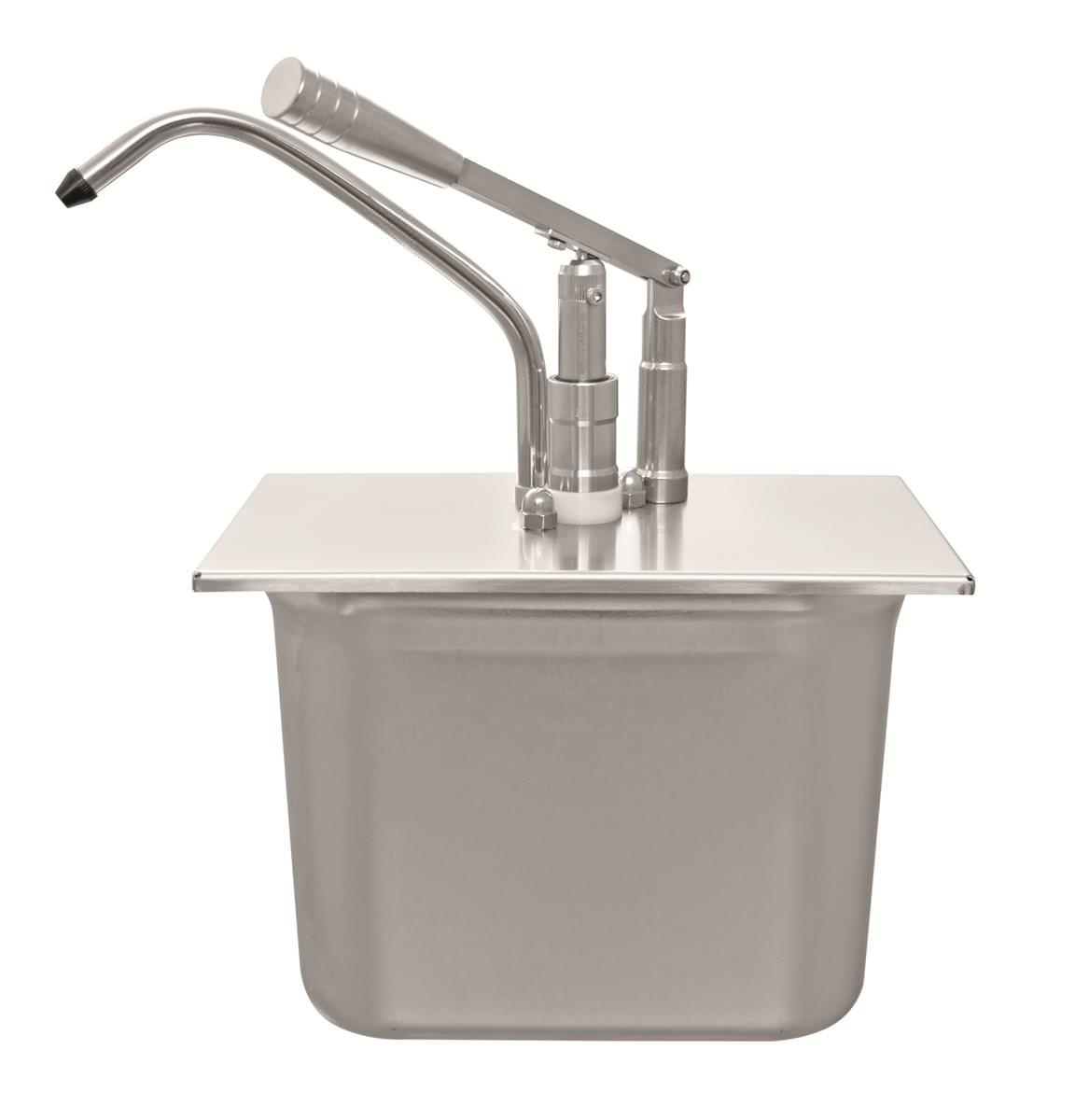 Schneider Hebel-Dosierspender für 1/4 GN ohne GN Behälter mit Deckel   Hebelbedienung Auslauf schwenkbar ohne GN-Behälter Geeignet für Behälter mit Tiefe 200 ml Dosierung einstellbar / 40 ml Antitropftülle