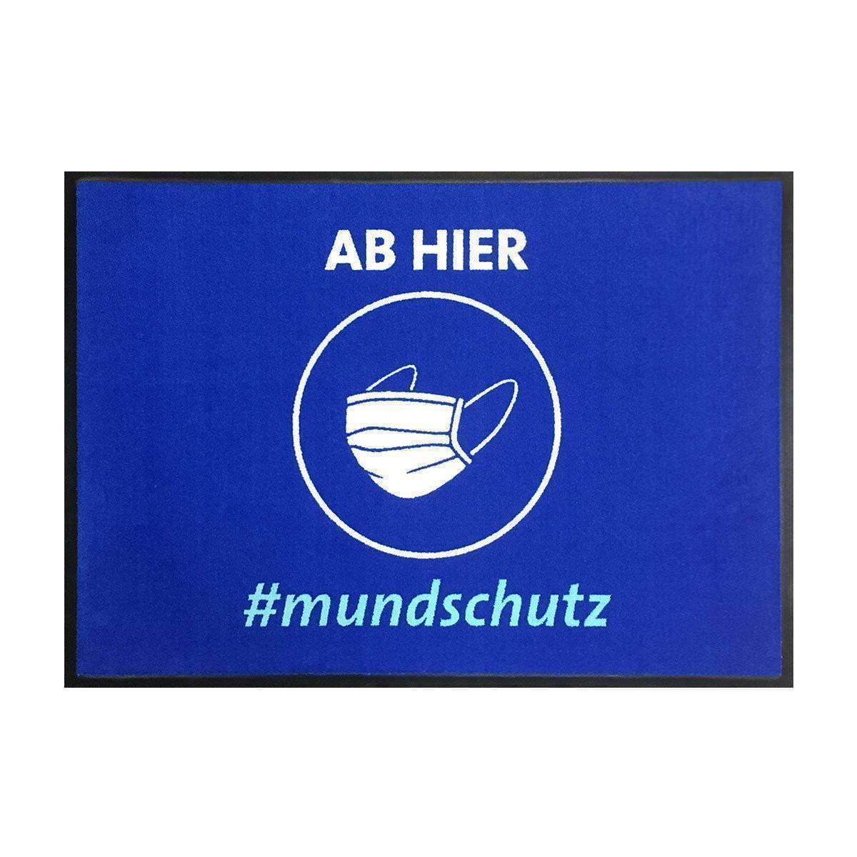 Hinweismatte “ab hier #mundschutz” 120 x 85 cm Unsere Hinweismatten weisen auffallend auf die neuen Sicherheitsbestimmungen hin. Außerdem halten sie Ihren Kundenbereich sauber. Unsere Hinweismatten sind sofort lieferbar. Sie benötigen andere Maße? Sie möchten Ihren eigenen Druck auf der Matte haben? Kein Problem wir bieten individuelle Gestaltung in allen Größen, Formen & Farben (Druck mit 32 aus 32 Standardfarben) an. Rufen Sie uns einfach an! Anwendungsbereiche Stark frequentierte Eingangsbereiche Filialisten, Franchising Kommunale Einrichtungen Hotels und Gaststätten Kindergärten, Schulen, Seniorenheime Apotheken, Sanitätshäuser, Krankenhäuser Handel und Industrieunternehmen Vorteile Hohe Schmutz- und Feuchtigkeitsaufnahme geringere Stolper- und Rutschgefahr Rutschhemmender Nitrilgummirücken Personalisierung mit Kundenlogo möglich waschbar flexibel an verschiedenen Orten einsetzbar hinterlässt keine Kleberückstände individuelle Gestaltung möglich Maß auf Situation vor Ort anpassbar viele verschiedene Standarddesigns verfügbar Spezifikationen Obermaterial: 100 % Polyamid 6 Rücken: 100% Nitrilgummi Inkl. umlaufender Sicherheitstrittrand Waschbar bis 60°C / industriell waschbar bis 30°C Wasseraufnahme: 2-3 Liter/m² Schutzaufnahme: 320 g/m² Made in Germany Maße: 120 x 85 cm