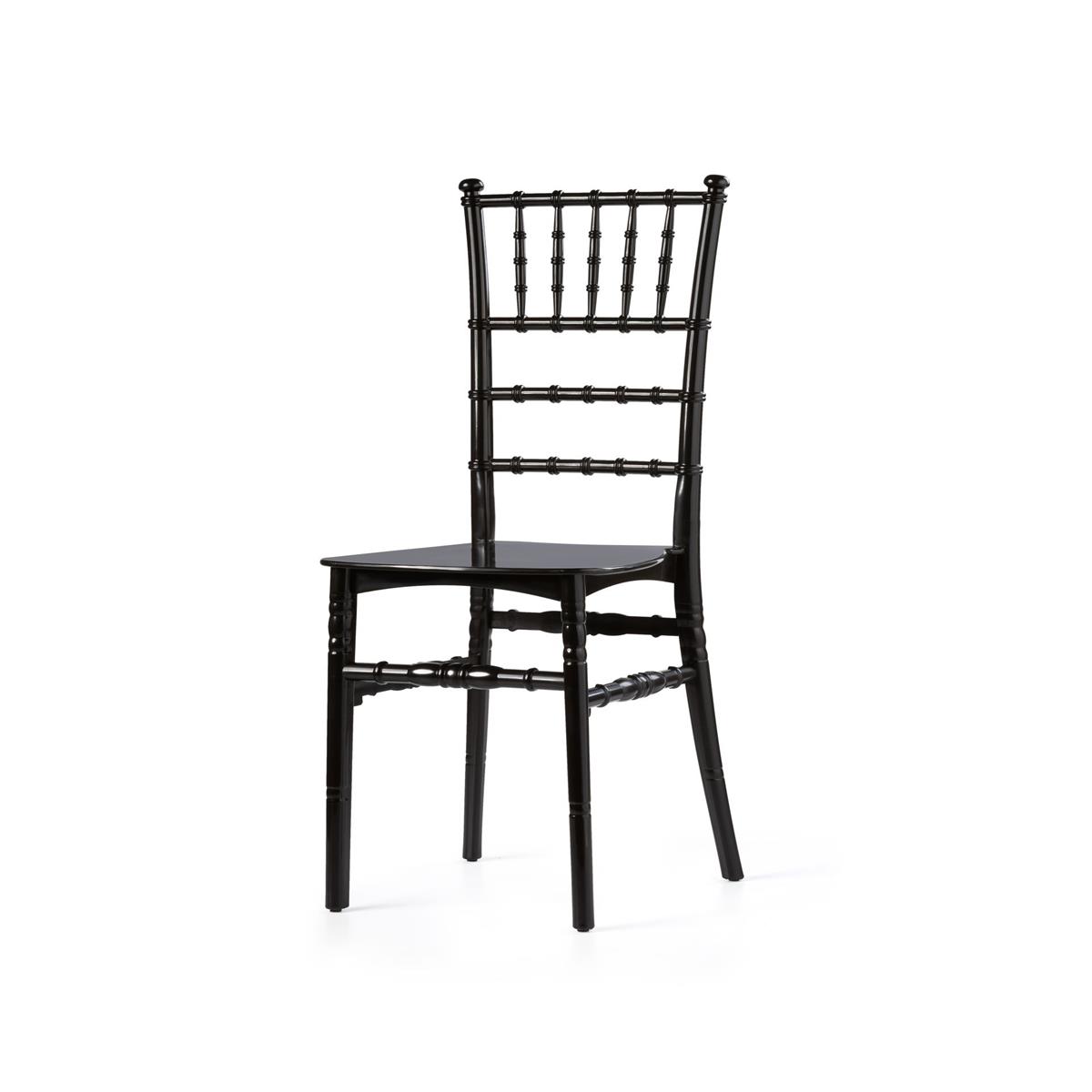 Hochzeitsstuhl Tiffany schwarz Der traditionelle Stuhl Tiffany ist nun auch in der Farbe Schwarz erhältlich. Es handelt sich um einen trendigen Stuhl, der daher sehr gut für moderne Einrichtungsstile geeignet ist. Der Stuhl besteht zur Gänze aus Polypropylen-Kunststoff mit Glasfasern und Gasinjektion. Dadurch ist er ein sehr robuster Stuhl, der nicht zerbrechlich ist. Es ist auch möglich, eine Kunstledersitzfläche zu bestellen, diese wird mit doppelseitigem Klettband auf dem Stuhl befestigt. Auch für diesen Stuhl wurde ein zugehöriger Transportwagen entwickelt. trendig und gut für moderne Einrichtungsstile geeignet sehr robust Farbe: Schwarz Material: Polypropylen mit Glasfasern und Gasinjektion nicht zerbrechlich stapelbar Maße: 41 x 43 92 cm (BxTxH) Gewicht: 4 kg