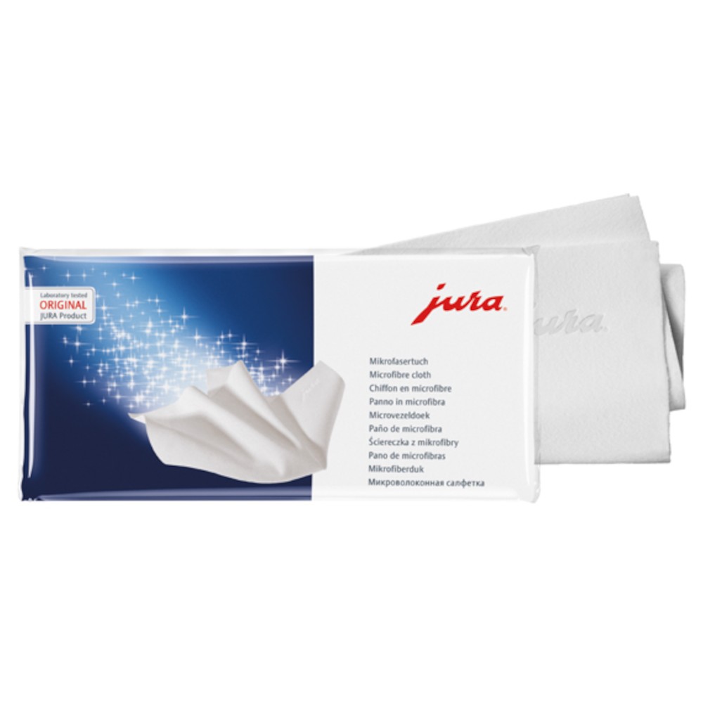 Mikrofasertuch für Kaffeevollautomaten Lästige Fingerabdrücke und eingetrocknete Wasserflecken lassen sich mit einem gewöhnlichen Taschentuch nur schwer von Ihrem JURA Kaffeevollautomaten entfernen. Mit dem speziell für JURA entwickelten Mikrofasertuch wird das Reinigen nun zum Vergnügen. Es eignet sich für Oberflächen wie Chrom, Aluminium, Metall, Holz, Textil und Leder. Lieferumfang 1 x Mikrofasertuch für Kaffeevollautomaten