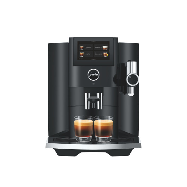 Für weitere Artikeldetails, wählen Sie hier ein anderes Register aus …JURA S8Piano Black (EB)Kaffeevollautomat für den PrivathaushaltAromaG3-MahlwerkPuls-Extraktionsprozess (P.E.P.®)15 Kaffeespezialitäten zur WahlSteuerung über Touch-DisplayTechnische KurzbeschreibungFüllmenge Wassertank: 1,9 LiterAnzahl Bohnenbehälter: 1Bohnenbehälter mit Aromaschutzdeckel: jaKapazität pro Bohnenbehälter: 280 gKaffeesatzbehälter (max. Portionen): ca. 16Kabellänge: 1,1 mSpannung: 230 Volt WechselstromStromstärke: 10 ALeistung: 1450 WattGewicht: 10 kgMaße (B/H/T): 28 x 34,8 x 43,9 cmFarbe: piano blackModellreihe: S8 (EB)Besonderheiten JURA S8 Kaffeevollautomat pianoblackJURA S8 Kaffeevollautomat der Premium-MittelklasseSie vereint das Beste aus der Kompaktklasse mit Elementen aus dem Premiumsegment und besticht sogar mit einem Hauch von GIGA. Die eindrucksvolle Spezialitätenvielfalt und das meister…