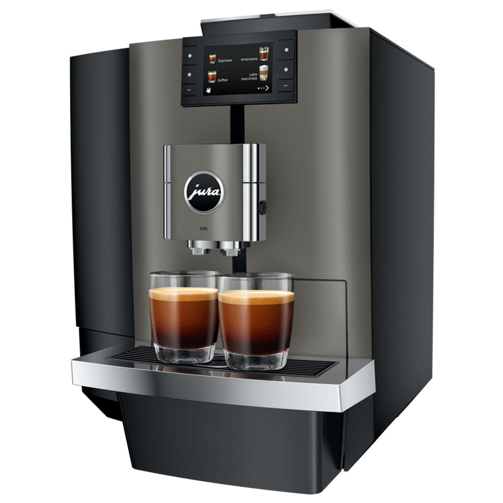 Für weitere Artikeldetails, wählen Sie hier ein anderes Register aus …JURA W4Pure-coffee-Vollautomat in kompakter Businessgröße3,5"" Display für Benutzerfreundlichkeitabschliessbarer WassertankUnterstützt BezahlsystemeTechnische KurzbeschreibungFüllmenge Wassertank:3 lBohnenbehälter: 500gKaffeesatzbehälter (Portionen): ca. 25Gewicht: 10,4 kgMaße (B × H × T): 29,5 x 44,3 x 44,6 cmMahlwerk: P.A.G.2Spannung: 230 VLeistung: 1450 WBesonderheitenDer Profi für heiße und kalte KaffeespezialitätenDie X10c setzt neue Maßstäbe und bringt Vielfalt und Frische ins professionelle Umfeld. Wortwörtlich, denn ihr Repertoire umfasst stolze 34 Kaffeespezialitäten, acht davon kalt extrahiert. Neben den klassischen Hot Brews, den beliebten Cold Brews zählen außerdem der Americano und der Lungo zur Vielfalt des Profi-Vollautomaten. Mit der One-Touch-Lungo-Funktion bereitet der Profi auch die verlängert…