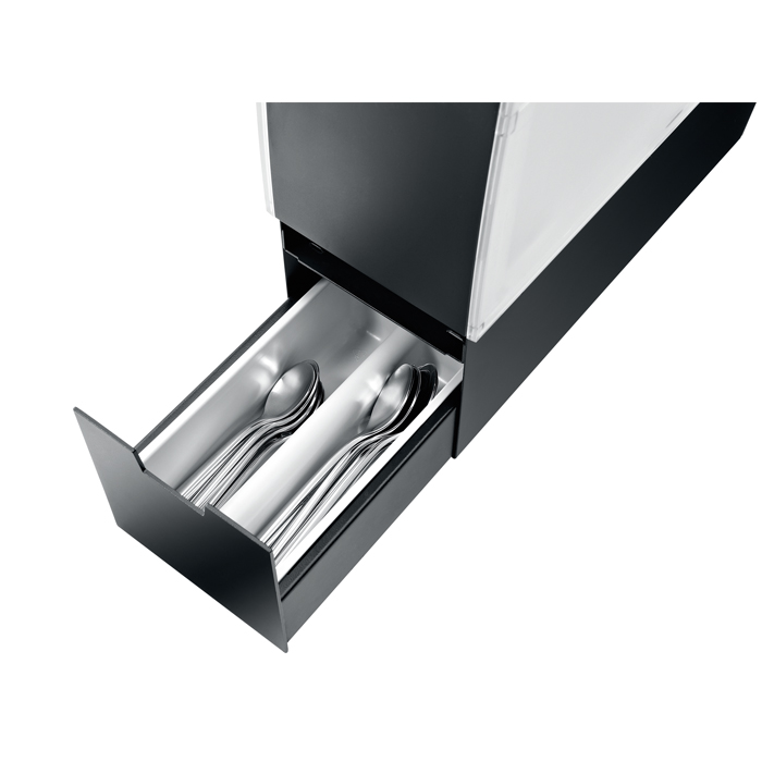 Zubehörschublade für Tassenwärmer Zubehörschublade für JURA Tassenwärmer – Giga 5 Dank der neuen Zubehörschublade passt sich der Tassenwärmer perfekt an die Gerätehöhe der GIGA 5 an. Zudem profitieren Sie von einem weiteren Fach, um Ihre Kaffee- und Espressolöffel optimal zu platzieren. Lieferumfang 1 x Zubehörschublade für JURA Tassenwärmer Technische Daten Gewicht: 2 kg Maße (BxHxT): 10,9 x 8,9 x 30,4 cm