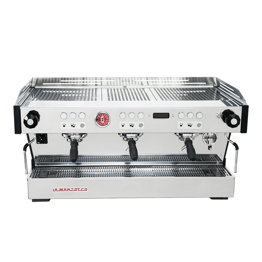 La Marzocco GB5 xSiebträger mit folgenden Eigenschaften:Dualboiler-SiebträgerGesättige BrühgruppenIsolierte BoilerDigitales DisplayGigleuer aus RubinBarista Lights & Auto Brew Ratio optional erhältlich.Geeignet für Gastronomie und Gewerbe La Marzocco Linea PB Automatic (AV) – Lieferumfang1x Maschine in Originalverpackung1x USB-Stick mit Anleitungenzahlreiches ZubehörBesonderheiten Technische KurzbeschreibungBauartDualboiler-SystemGetrennte Boiler✔DUAL PID✔Gesättigte Brühgruppen✔Isolierte Boiler✔Leistung, 2gr / 3gr / 4gr4600W / 6100W / 8000WKaffeeboilerkapazität, 2gr / 3gr / 4gr3,4 / 5 / 6,8 LiterDampfboilerkapazität, 2gr / 3gr /4gr7 / 11 / 15 LiterMaße HxBxT, 2gr / 3gr / 4gr53,3x71x59 / 53,3x95x59 / 53,3x119x59 cmMarese-ClubLa Marzocco Linea PB AV – VorzügeVon Piere Bambi entwickelt und zu dessen Ehren benannt, präsentiert die Line PB ein neues Niveau an Leistung, Zuverlässigkeit u…