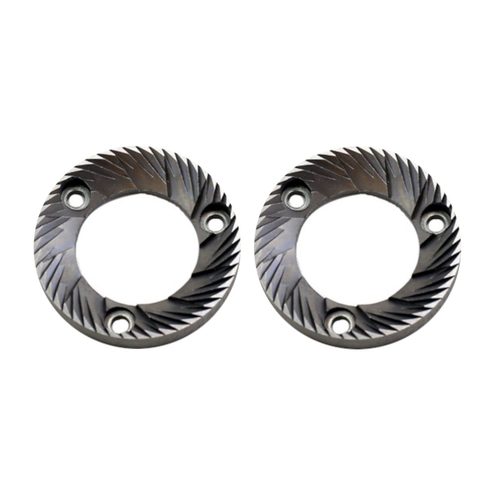 Macap: Mahlscheiben M2 SerieMaße:Durchmesser (1) ø 50mmInnen-Durchmesser (2) ø 30mmHöhe 7,5mmZahnabstand mmLoch ø 4,6mmBohrung ø 7,6mmBefestigung 38mmDrehrichtung linksLieferumfang: 1 x Mahlscheiben Set, 2 StückDas Ersatzteil passt in folgende Modelle:MACAPM2DM2M