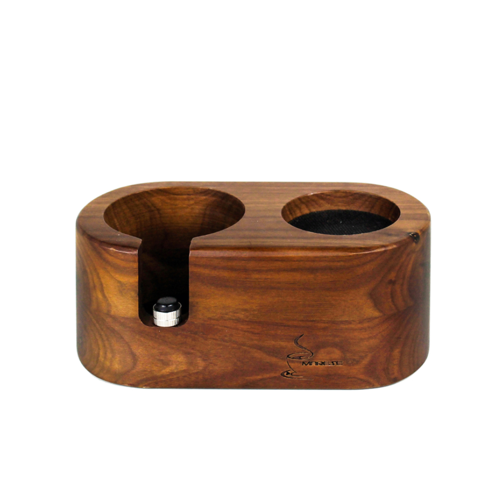 Marese Tampingstation NussholzDiese Marese Tamperstation überzeugt funktional wie optisch. Aus wunderschönem Nussholz gefertigt ist sie mehr als ein optisches Highlight für Ihre Siebträgerausstattung. Sie hält ihren Filterträger während des Tampervorgangs stabil und ist anschließend der ideale Ort zur Aufbewahrung des Tampers.Jede Tampingstation ist ein UnikatHinweis: Sie wissen, Holz ist ein Naturprodukt und alle Tampingstationen unterscheiden sich leicht in Farbe und Maserung, dies macht jeden Artikel zum Unikat. Eine Vorab-Auswahl ist aber leider nicht möglich, lassen Sie sich von diesem tollen Holz einfach überraschen!Lieferumfang1x Marese Tampingstation aus NussholzTechnische DatenMaße (L x B x H): 17,5 x 9,5 x 7,5 cmTamperaussparung: 60 mmDurchmesser der Aussparung für Filterträger = 72mmPassend für alle Filterträger mit 58mm Durchmesser