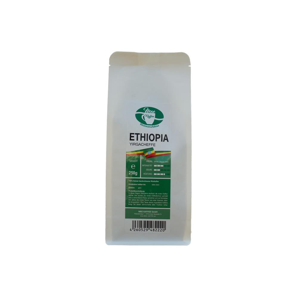 Mee Kaffee Äthiopien YirgacheffeIntensität:Säure:Röstung:Profil:Zartbitterschokolade, Zitronat, KakaoMee Kaffee Äthiopien YirgacheffeÄthiopien gilt in zweifacher Hinsicht als Ursprungsland des Kaffees. Zum einen war es angeblich ein äthiopischer Hirte, der als erster die belebende Wirkung des Kaffees entdeckt haben soll. Zum anderen lassen sich die genetischen Ursprünge des Arabica-Kaffees zu 99% nach Äthiopien zurückverfolgen. Eine der bekanntesten Kaffeeregionen des Landes ist dabei die im Südwesten von Äthiopien gelegene Region Yirgacheffe. Der gleichnamige Kaffee wird dort in einer Höhe zwischen 1.800 und 2.100 Metern angebaut. Seit Jahren erfreut er sich weltweit einer steigenden Beliebtheit bei Kaffeekennern. Der Yirgaceffe ist für sein intensiv blumiges Aroma bekannt, das von einer eleganten Säure und fruchtiger Süße sekundiert wird. Kenner werden aber auch Gewürze, wie Pfeffer, h…