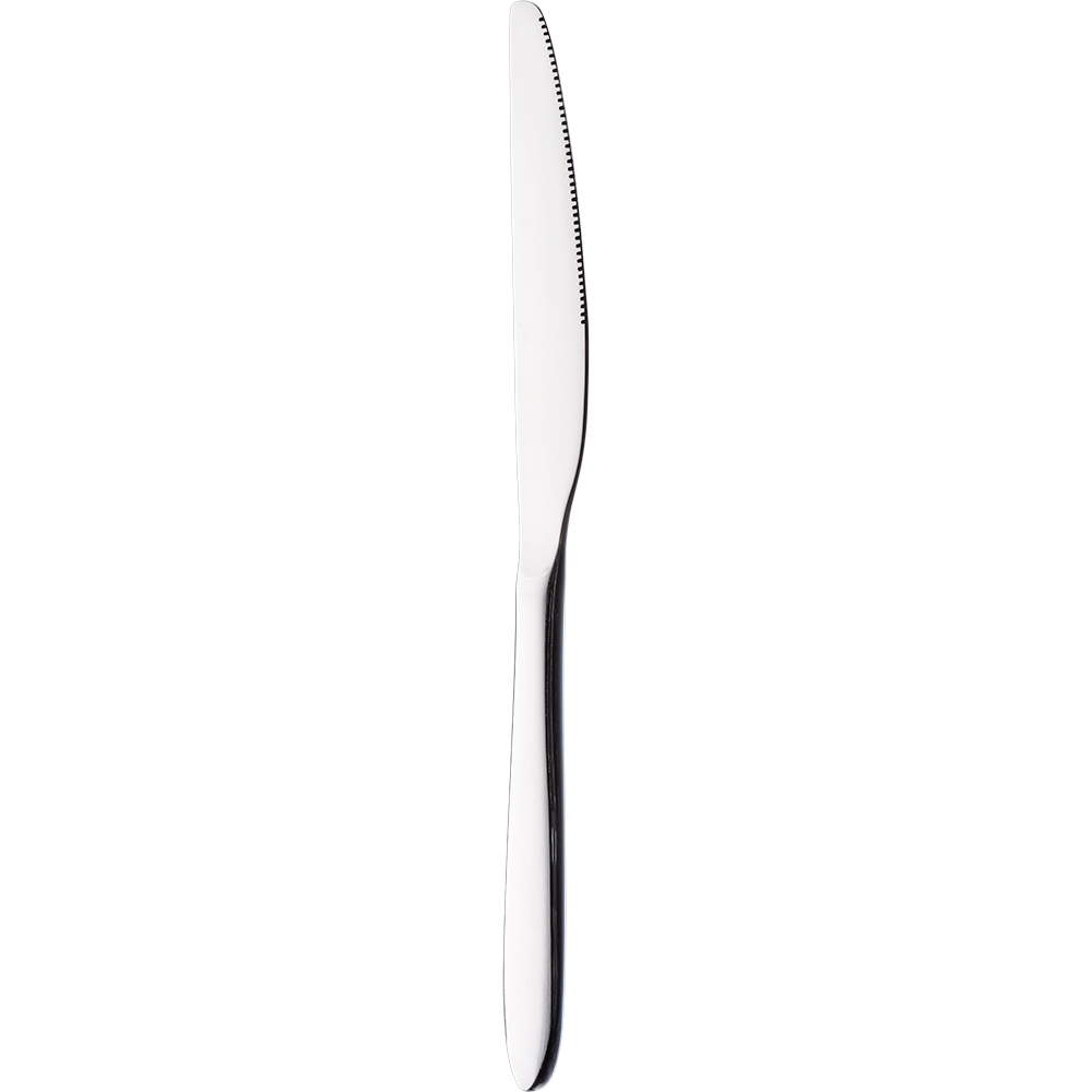 Menümesser SEGURA Schlank, ausbalanciert und schnitttsicher: Das Menümesser SEGURA führt die Hand über einen elegant fließenden Griff hin zur geraden Klinge mit qualitativem Wellenschliff. Das harmonische, moderne Design passt ebenso gut zu klassischen Gedecken und macht jede Menüfolge souverän servicefähig. Produktdetails Material: Edelstahl 18/0 (INOX), nickelfrei & rostfrei Klinge: geradlinig mit hochwertigem Wellenschliff Länge: 230 mm Pflege: spülmaschinengeeignet, hygienisch & pflegeleicht Handling: ausbalanciertes Gewicht, griffsympathische Form Aufbewahrung: platzsparend Qualität: europäisches Qualitätsprodukt von Stalgast Verkauf: Preis pro Stück (Verkauf in Verpackungseinheiten) Hinweis: Maßangaben können leicht abweichen Vorteile auf einen Blick Zuverlässige Schnittleistung dank präzisem Wellenschliff Universell kombinierbar – unterstreicht moderne & traditionelle Tischbilder Robust im Alltag – langlebiger Edelstahl für hohe Frequenzen Schnelle Prozesse – spülmaschinenfest & pflegeleicht Einsatzbereiche Gastronomie & Hotellerie: Restaurant, Hotel, Bistro Bankett & Catering: verlässlich bei großen Stückzahlen Gemeinschaftsverpflegung: solide Basis im täglichen Service Ergänzen Sie Ihr Gedeck mit dem Menümesser SEGURA – für geschmeidige Schnitte, klare Linien und einen Tischauftritt, der Qualität sichtbar macht.