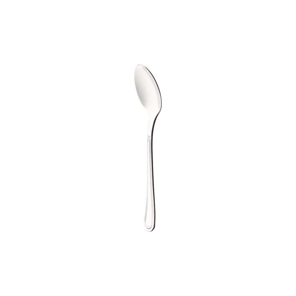 Moccalöffel RESTAURANT Der Moccalöffel RESTAURANT vereint das klassische Fadenmuster mit einer modern gerundeten Laffe. Der umlaufende Fadendekor betont das glänzende Heft und sorgt für ein elegantes, ruhiges Tafelbild – perfekt für Espresso, Mokka, Desserts und Verkostungen. Merkmale Design: klassischer Fadendekor, zeitlos & kombinierbar Material: Edelstahl 18/0 (INOX), nickelfrei Pflege: spülmaschinengeeignet, trocknet rückstandslos ab Handling: platzsparend aufzubewahren, angenehme Haptik Serie: RESTAURANT – passend zu Menümesser, -gabel, -löffel, Kaffeelöffel & Kuchengabel Marke: Stalgast – Profi-Qualität für die Gastronomie Vorteile Hygienisch & pflegeleicht: ideal für hohe Frequenzen Wirtschaftlich: robuste, langlebige Ausführung Universell kombinierbar: passt zu vielen Porzellan- und Glasserien Stil sichert Eindruck: feines Dekor für ein hochwertiges Setting Einsatzbereiche Gastronomie & Hotellerie: Café, Restaurant, Hotelbar, Bankett System- & Gemeinschaftsverpflegung: Kantine, Mensa, Betriebsrestaurant Privat: Espresso-Löffel für zu Hause und Gäste Technische Details Länge: 114 mm Material: Edelstahl 18/0 (INOX), nickelfrei Hinweise: Verkauf in Verpackungseinheiten; Maßangaben können leicht abweichen Klein, präzise, repräsentativ: Der Moccalöffel RESTAURANT setzt feine Akzente am Tisch und überzeugt im täglichen Einsatz mit Beständigkeit und Stil.