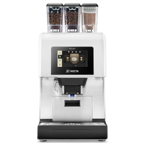 Necta Kalea2 Mühlen + 1 Instant & FrischmilchKaffeevollautomat für Gastronomie und Gewerbe mit folgenden Eigenschaften:Direktwahlen über HD TouchscreenFestwasseranschlussMDB-Bezahlsystemen kompatibelIntegrierter Cappuccinatore (Frischmilch)bis zu 150 Tassen/Tag Geeignet für Restaurants, Cafés und UnternehmenNecta KaleaEine Kombination aus Ästhetik und FunktionalitätKalea – Die neue Art Qualitätskaffee anzubieten. An das köstliche Heißgetränkemenü der KALEA kann man sich schnell gewöhnen. KALEA bietet den perfekt zubereiteten italienischen Espresso bis hin zu einem schaumigen Cappuccino und Latte Macchiato, um nur ein paar der Köstlichkeiten zu nennen. Kalea von Necta: Italiens Qualitätskaffee mit nur einem Fingertipp.Vorzüge der Necta KaleaEine einzigartige Lösung für jeden Geschmack – KALEA bietet den perfekten italienischen Espresso und hervorragenden Kaffee sowie weitere, mit Fris…