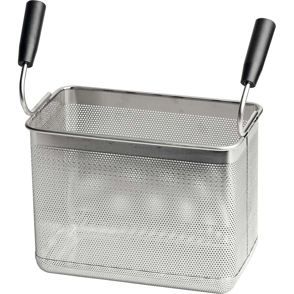 Nudelkorb GN 1/3, für SL12106SIn diesem Korb mit der idealen Lochung kochen nicht nur Nudeln bis zum perfekten Garpunkt, auch Gemüse, Reis, Kartoffeln oder Fisch sind bestens aufgehoben. Der Korb lässt sich durch die zwei gebogenen Griffe leicht einsetzten bzw. entnehmen und die isolierten Griffzonen schützen Sie vor Verbrennungen. Der Nudelkorb passt in alle Stalgast Nudelkocher der Serie 700 ND (SL47109SE, SL46106S) und ist ebenfalls in GN 1/6 (SL241216Z) erhältlich. Ein durchdachtes Zubehör Ihres Gastro-Experten Stalgast!hochwertiger Edelstahl passend für alle Stalgast Nudelkocher der Serie 700 ND isolierte, ergonomisch gebogene Griffe verstärkter, gerundeter Rand optimierte Lochung gerundete Bodenränder europäische Eigenproduktion der Firma Stalgast