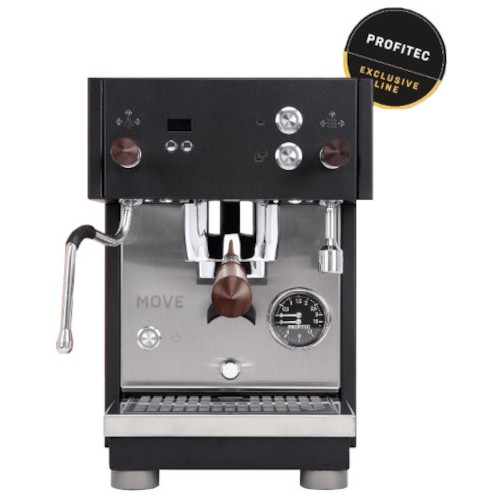 Profitec MoveHaushalts-Siebträger mit folgenden Eigenschaften:Dualboiler TechnologieProgrammierung der Bezugstasten>Low-Noise VibrationspumpeAutomatische BrühgruppenreinigungProfitec Drive – Lieferumfang1x Maschine in Originalverpackung1x Filterträger (bodenlos) mit befestig baren Silikonaufsätzen1x Ein-Tassensieb1x Zwei-Tassensieb1x Drei-Tassensieb1x Blindsieb1x Tamper1x BedienungsanleitungBesonderheitenTechnische KurzbeschreibungBauartDualboilerPumpenartLow Noise VibrationspumpeHolzartNussWasseranschlussWassertankFüllmenge Wasssertank2,8 LiterAufheizzeitca. 9 min.Brühgruppe BauartRingbrühgruppePid-SteuerungneinLeistung2200 WattGewicht19 kgMaße (B/H/T)270 x 445 x 375 mmFarbeschwarzGehäuseEdelstahl poliertMarese-ClubProfitec Drive – VorzügeDie Profitec Move steht für feinste Barista-Qualität im eigenen zuhause und hebt sich durch ihre hochwertigen Komponenten und das stilvolle Design …