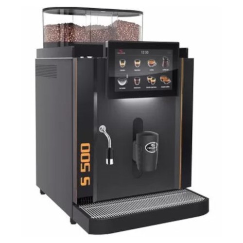 Rex Royal S500 CT (2022)Wasser, KaffeeKaffeevollautomat für Gastronomie und Gewerbe mit folgenden Eigenschaften:Benutzerfreundliches TouchscreenHeisswasserleistung von bis zu 58 Litern pro StundeIndividuelle Werbebotschaft auf dem Display möglichAlle Produkte auch als Doppelbezugbis zu 250 Tassen/Stunde Geeignet für Restaurants, Cafés und UnternehmenRex Royal S500 CTDie Kaffeevollautomaten der S500-Reihe von Rex-Royal gehören zu den besten, die im HoReCa-Bereich* angeboten werden.Mit seinem großen Angebot an Kaffeespezialitäten, die in schneller Abfolge ausgegeben werden können, erfüllt der S500 Kaffeevollautomat höchste Ansprüche der professionellen Gastronomie. Die solide Bauweise der Brühgruppe, mit einer Kapazität von 23 Gramm Kaffeepulver, ist auf Langlebigkeit und Wartungsfreundlichkeit ausgelegt.Das Milchsystem ist der entscheidende Part für den perfekten Milchschaum, und hier kan…