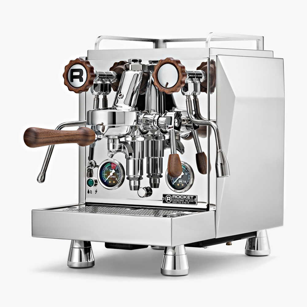Für weitere Artikeldetails, wählen Sie hier ein anderes Register aus … Rocket Espresso: Giotto Cronometro RHolzgriffeNußbaum Haushalts-Siebträger mit folgenden Eigenschaften: Shot-Timer Zwei-Kreis-System Rotationspumpe Pid-Steuerung E61-Brühgruppe ca. 15 Minuten Aufheizzeit 2,9 Liter Wassertank oder Festwasser Rocket Giotto Evoluzione R – Lieferumfang 1x Maschine in Originalverpackung 1x Einzel-Siebträger 1x Doppel- Siebträger 1x Blindsieb 1x Aluminium-Tamper (Ø 58 mm) 1x Reinigungsbürste für die Brühgruppe 1x Bedienungsanleitung 1x How-To-Anleitung auf CD Besonderheiten Technische KurzbeschreibungBauart Zwei-KreissystemPumpenart RotationspumpeVentilverschlussDrehventilWasseranschlus…