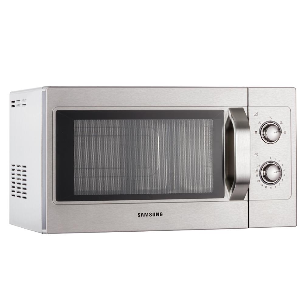 SAMSUNG Mikrowellenherd 1050 Watt manuelle Steuerung  fünf Leistungsstufen  Gehäuse aus Edelstahl  Abmessungen des Garraums: 336 x 349 x 225 mm (BxTxH)  Kapazität 26 Liter  Gewicht: 17,5 kg  Geräteleistung: 1050 W