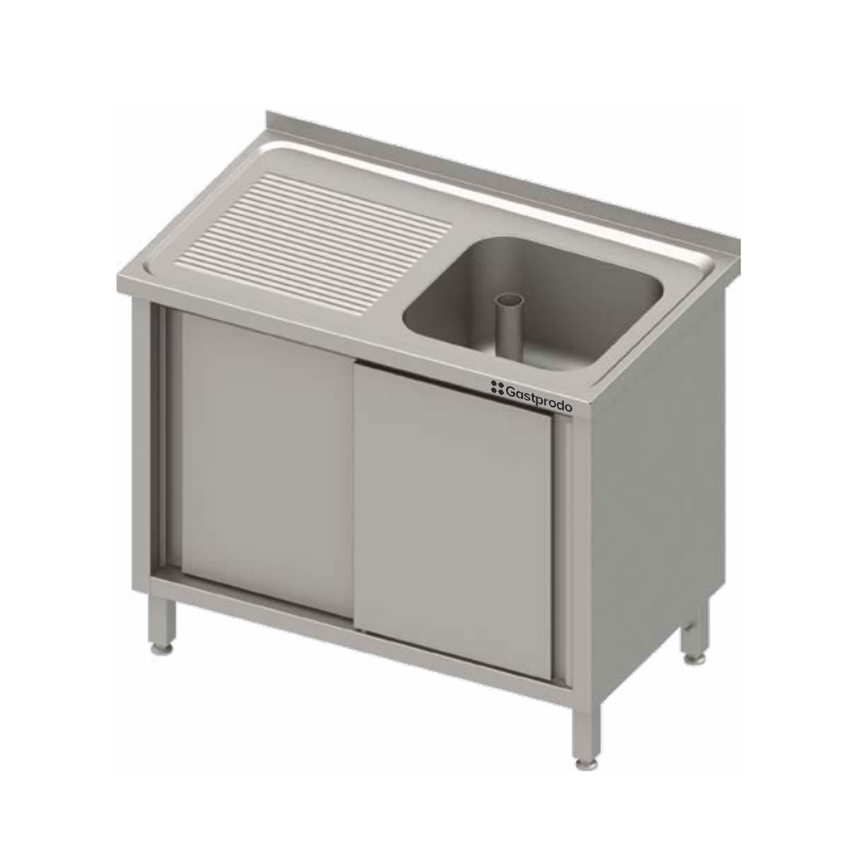 Edelstahl Spülschrank mit Schiebetüren, 130 x 60 x 85 mm, mit einem Becken rechts, mit Aufkantung, verschweißt Der Spülschrank aus Edelstahl mit Schiebetüren überzeugt durch solide Konstruktion, glatte, hygienische Flächen und eine durchdachte Ergonomie. Vorteile auf einen Blick 40 mm Aufkantung zum Schutz vor Spritzwasser Plattenstärke 1,2 mm, Beckenstärke 1 mm Umlaufender Wulstrand (19 mm) für zusätzliche Stabilität Gefertigt aus rostfreiem Edelstahl AISI 441 (optional AISI 420) Schiebetüren mit leichtgängigem Lauf für schnellen Zugriff Arbeitsplatte mit Rahmenverstärkung (100 mm Höhe) Gerillte Abtropffläche, mit Omegaprofilen verstärkt Höhenverstellbare Füße: +25 mm bis −4 mm Lieferung inkl. Überlaufrohren (180 mm) und Abflusssieben Schrankgehäuse ohne hintere Wand – ideal für Wandanschlüsse Technische Details Maße: 130 x 60 x 85 mm (BxTxH) Beckenmaße: 400 x 400 x 250 mm Beckenanzahl: 1 Becken Beckenposition: rechts Ausführung: fest verschweißt Schrankrückseite: ohne hintere Wand Einsatzbereiche Die richtige Wahl für Produktionsküchen, Mensen und Schulverpflegung – zuverlässig bei hoher Frequenz. Mit diesem Edelstahl Spülschrank gewinnen Sie Alltagstauglichkeit, Stabilität und Hygiene in einem.