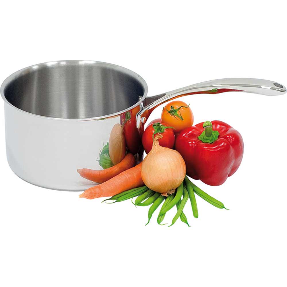 Stalgast Mehrschicht Stielkasserolle Ø 200 mm professionelle Mehrschicht-Kochtopfserie hergestellt aus mehreren Materiallagen (Edelstahl/Aluminium/Edelstahl) optimale Wärmeleitung durch Aluminium und der hohen Robustheit des Edelstahls gut geeignet für das Aufkochen von Milch, Saucen und dickflüssigen Suppen für Induktion geeignet ohne DeckelDurchmesser: 200 mm Fassungsvermögen: 3,8 Liter