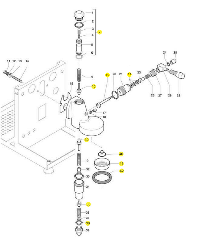 Dichtungssatz zum Revidieren Ihrer E61 Brüheinheit.Mit diesem Dichtungssatz erhalten Sie Ersatzteile, welche beim Revidieren einer E61 Brüheinheit erweitert benötigt werden.Der Dichtungssatz besteht aus folgenden Teilen:Position 7 = ECM Brüheinheitenzylinder oben E61 Edelstahl kpl., Art. Nr. P1000.1Position 10 = Faema E61 Ventil Gruppe E 61 oben / u.a., Art. Nr. C219900424Position 19 = Faema Nockenwelle für Brüheinheit E61 / u.a., Art. Nr. C219900425Position 22 = Faema E61 U-Scheibe Achse Gruppe E61 15,5×7,5×4, Art. Nr. C219900426Position 30 = Faema E61 Ventil Gruppe E61 mitte / u.a., Art. Nr. C219903081Position 35 = Faema E61 Ventil Gruppe E61 unten / u.a., Art. Nr. C219900430Position 38 = Faema E61 Dichtung Brüheinheit E61 unten 26x21x2mm, Art. Nr. C469900783Position 40 = Faema E61 Sprühverteiler E61 Brüheinheit / u.a, Art. Nr. 1501561Position 41 = ECM Dus…