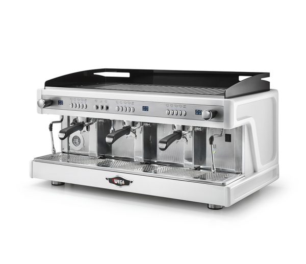 Wega Airy (Weiß) 3 Brühgruppen Siebträger für Gastronomie und Gewerbe mit folgenden Eigenschaften: Shot Counter pro Gruppe Automatische Reinigung der Gruppen Austauschbaren farbigen Seitenwänden 4-Dosismengen-Programmierung Geeignet für Restaurants, Cafés und Unternehmen Haben Sie Fragen? Bei uns werden Sie richtig beraten, denn wir finden das passende Modell für Ihre Bedürfnisse! Wählen Sie: 0931 467 864 20 Informationen und Know-How zu Espressomaschinen finden Sie hier Technische Kurzbeschreibung Spannung: 240-400 / 380-415 Volt Leistung:5.600 Wat…