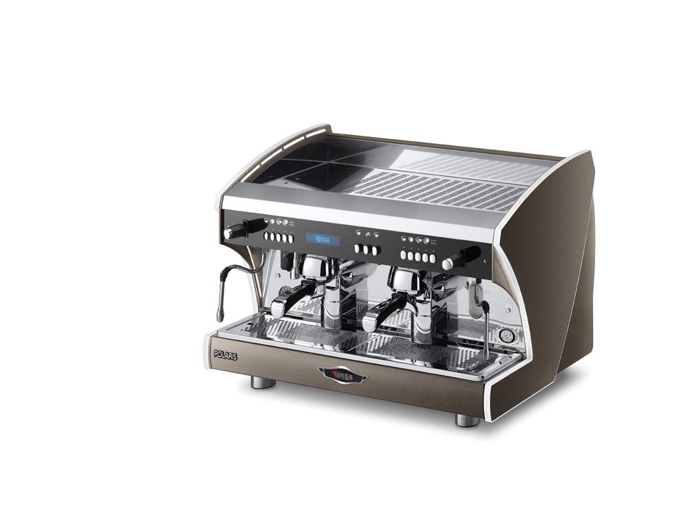 Wega Polaris (braun)2 Brühgruppen ohne AutosteamerSiebträger für Gastronomie und Gewerbe mit folgenden Eigenschaften:4 programmierbare Mengen Kaffee je GruppeRotationspumpentechnikAutomatischer Spülgang der GruppenLED Beleuchtung Geeignet für Restaurants, Cafés und UnternehmenHaben Sie Fragen? Bei uns werden Sie richtig beraten, denn wir finden das passende Modell für Ihre Bedürfnisse! Wählen Sie: 0931 467 864 20Informationen und Know-How zu Espressomaschinen finden Sie hierTechnische KurzbeschreibungSpannung:120 / 230-240-400 VoltLeistung:2.900 / 3.700 / 4.000 WattFassungsvermögen Kessel:12 LiterBreite x Tiefe x Höhe:75 x 57 x 54 cmNettogewicht:74 kgBruttogewicht:84 kgVerpackungsvolumen:0,45 qmBesonderheitenWega Polaris (Schwarz) – 2 Brühgruppen ohne AutosteamerDie Polaris des italienischen Herstellers Wega zeichnet sich durch ein futuristisches Design aus, ohne dabei zu verspielt zu wi…